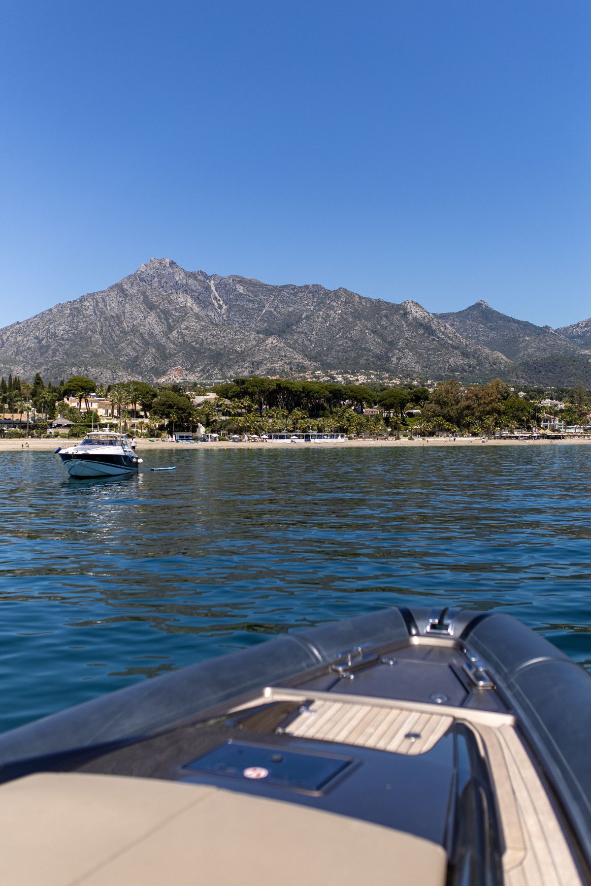 Relax on the forward and aft sundecks, enjoy the convenience of a hard top sunroof, and make use of the swimming platform and exterior shower. On board, you’ll find a fully equipped kitchen, one bathroom, and a comfortable cabin. Drinks, snacks, and a Seabob are included for a perfect charter from Puerto Banús.