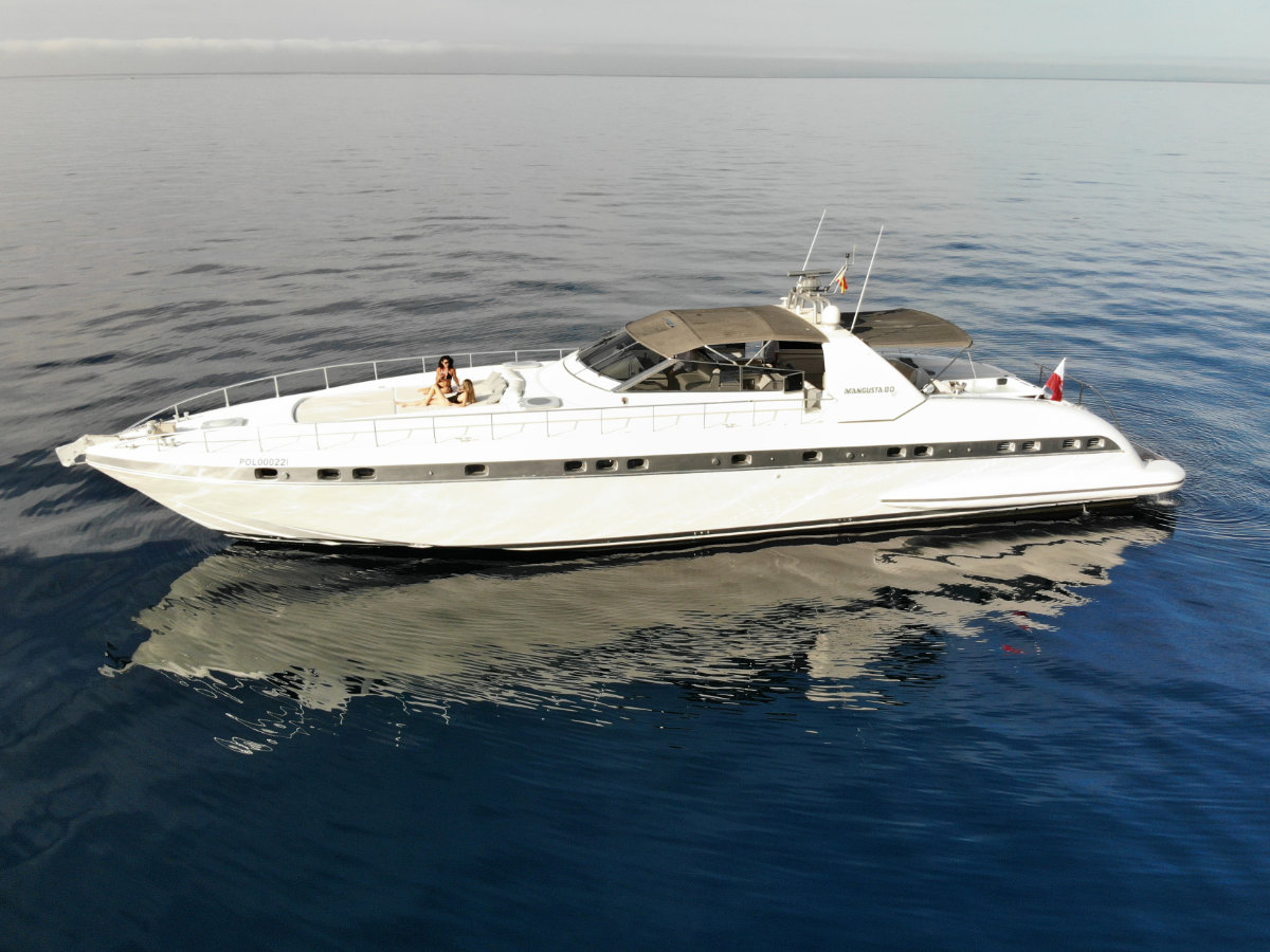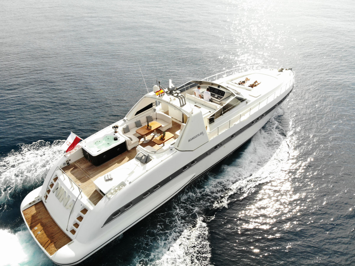 The Mangusta 80 blends Italian design, performance, and luxury for an unforgettable experience on the water. With space for up to 12 guests and 4 fully equipped cabins, it’s perfect for day charters or longer escapes along the Costa del Sol. Whether you’re relaxing in the stylish lounge, enjoying watersports like jet ski and seabob, or soaking up the sun on deck, every detail is crafted for your comfort.